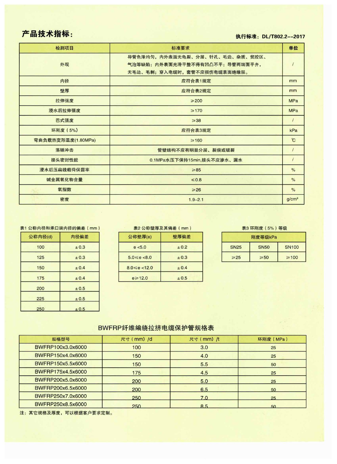 纖維編繞拉擠電纜保護(hù)管(BWFRP)規(guī)格型號(hào):