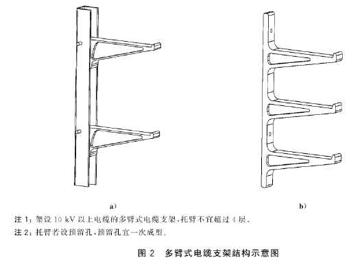 2.2   電纜支架按單個(gè)托臂所能承受的垂直荷載,分為l級(jí)、2級(jí)、3級(jí)、4級(jí)、5級(jí).